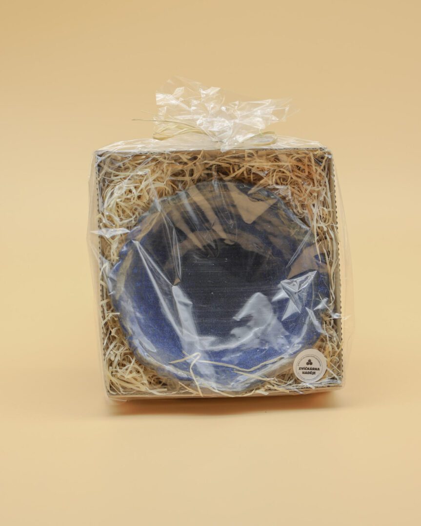 Dárkově zabalená keramická miska, barva modrá, ruční práce.