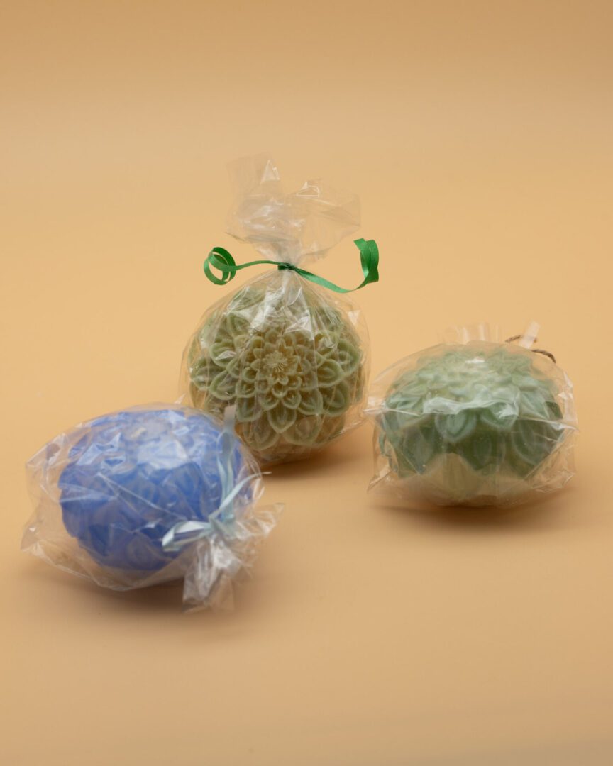 Vosková svíce ve tvaru květiny, výška 7 cm, průměr 9 cm, ruční práce, každý kus originál.